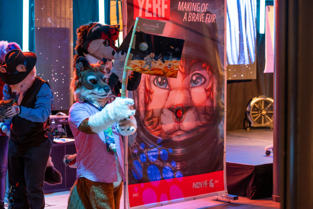 Dass die Eurofurence 2025 ebenfalls unter einem Space-Motto stand, machte den Einsatz als dekoratives Element dort fast schon naheliegend. Die Eurofurence ist eine jährlich stattfindende, internationale Furry-Convention in Hamburg, 2025 mit knapp 6.400 Teilnehmenden.